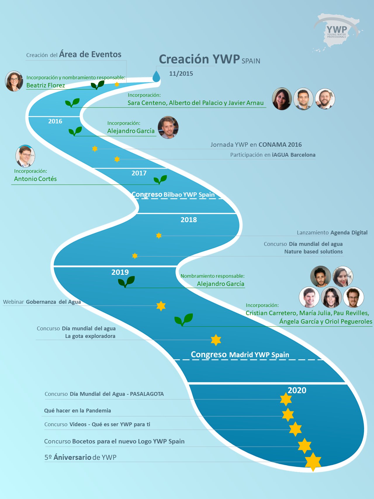 No tardaron en definir su propia hoja de ruta y comenzaron aspirando alto. ¿Qué mejor forma de hacer una primera aparición en público que reuniéndonos con el CEO de una de las principales empresas españolas del sector? Y así fue, en noviembre de 2016 los YWP tuvieron un coloquio con Ángel Simón, participando también en una mesa redonda del iWater.